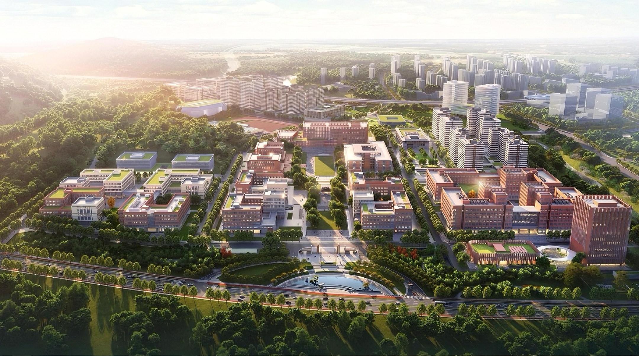 華西樂城研究院西南側入口黃昏半鳥瞰